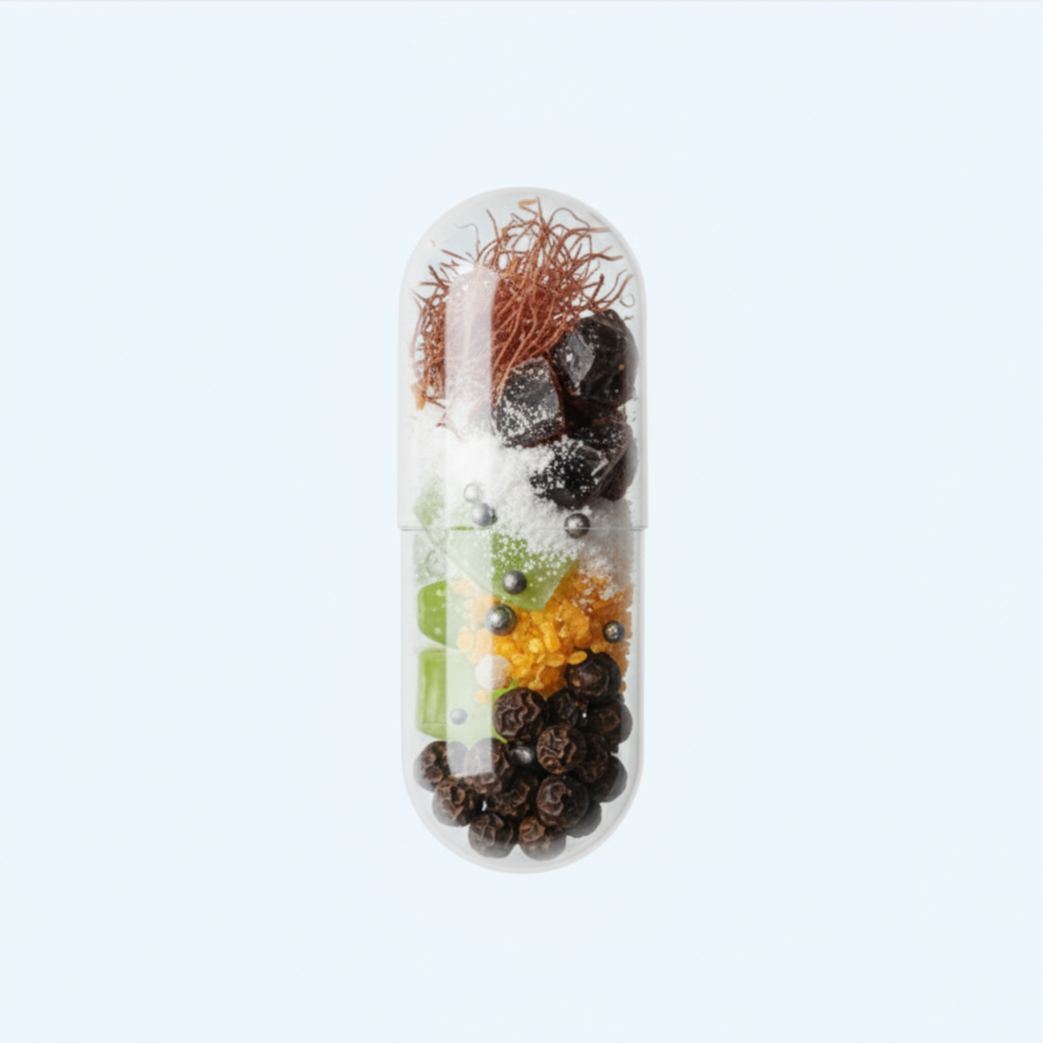 Mit bioaktivem Piperin aus schwarzem Pfeffer – ein innovativer Bestandteil, der in modernen und hochwertigen Formulierungen eingesetzt wird.