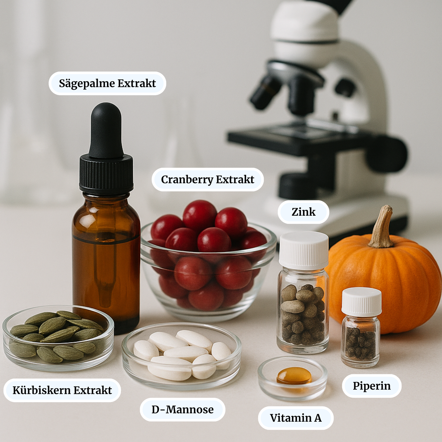 Bewährte Pflanzenextrakte wie Sägepalme, Kürbiskern, Cranberry und D-Mannose kombiniert mit Vitamin A, Zink und Selen – für eine ganzheitliche Unterstützung der Blasen- und Harnwegsfunktion.
