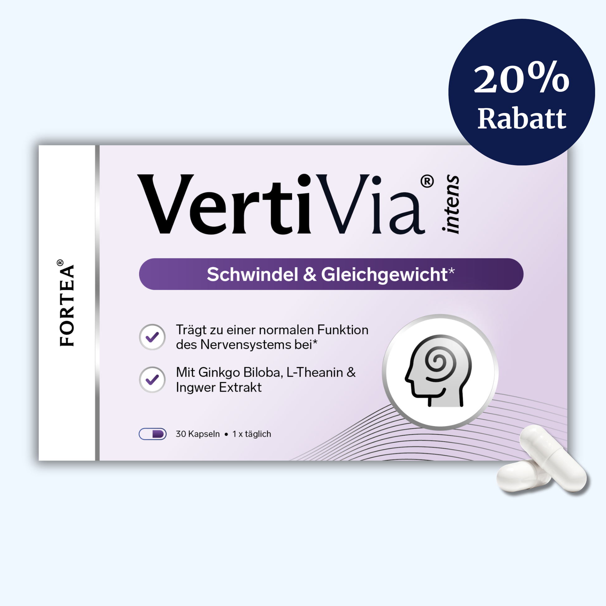 ,,VertiVia® kombiniert Ginkgo, L-Theanin und Ingwer mit essenziellen B-Vitaminen – eine hochwertige Formulierung, die Schwindel und Gleichgewicht auf moderne Weise unterstützt.´´