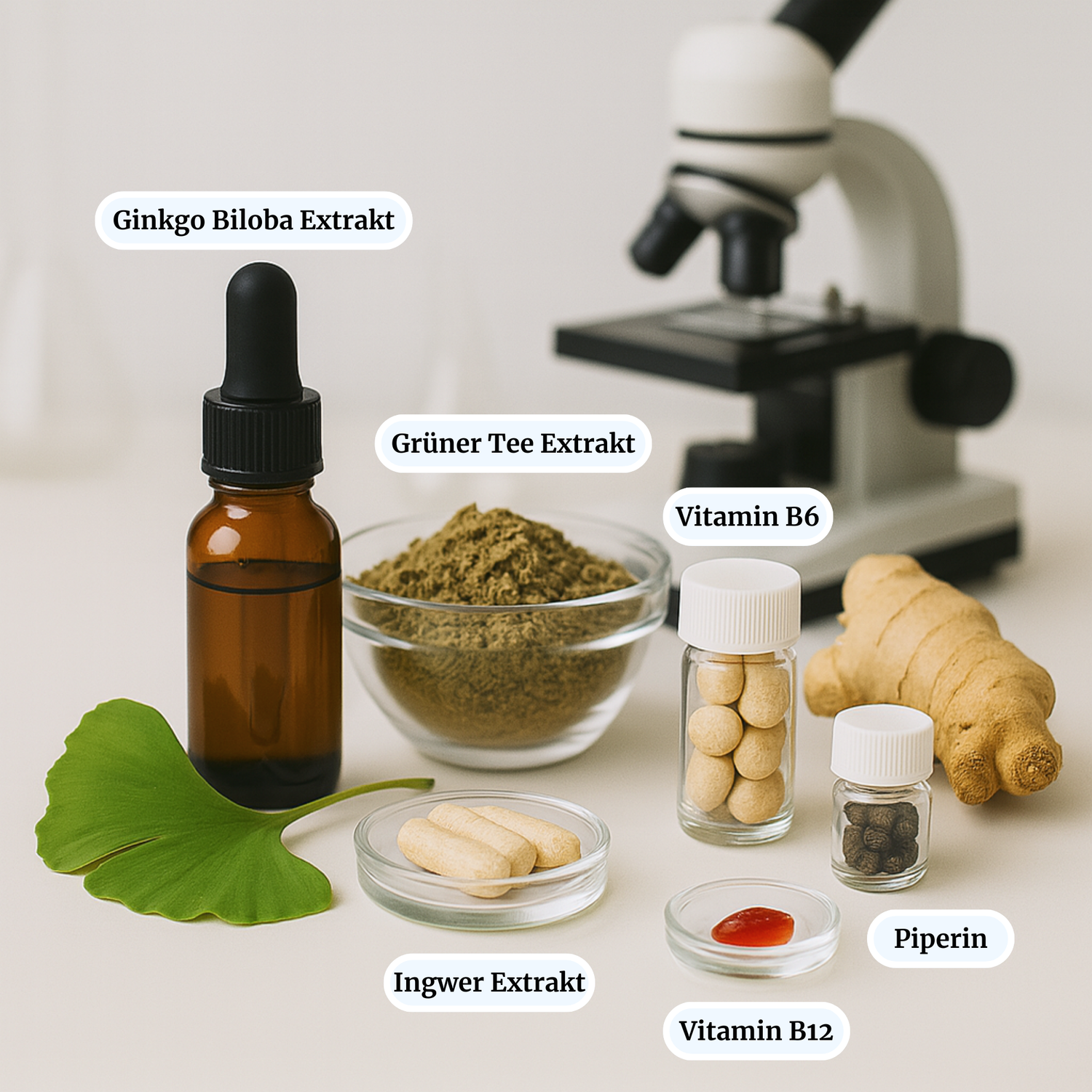 Bewährte Pflanzenextrakte wie Grüner Tee, Ginkgo und Ingwer kombiniert mit Magnesium, Vitamin B6, Vitamin B12 und Zink – für eine ganzheitliche Unterstützung der Nervenfunktion und des Energiestoffwechsels.